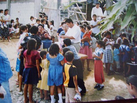 Repartiendo alimentos a los niños con nuestro hermano Mauricio Camargo